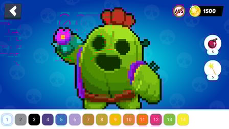 Você pode usar uma bomba para colorir grandes áreas rapidamente e uma varinha mágica para preencher todos os pixels adjacentes da mesma cor, tornando sua experiência de coloração mais emocionante!