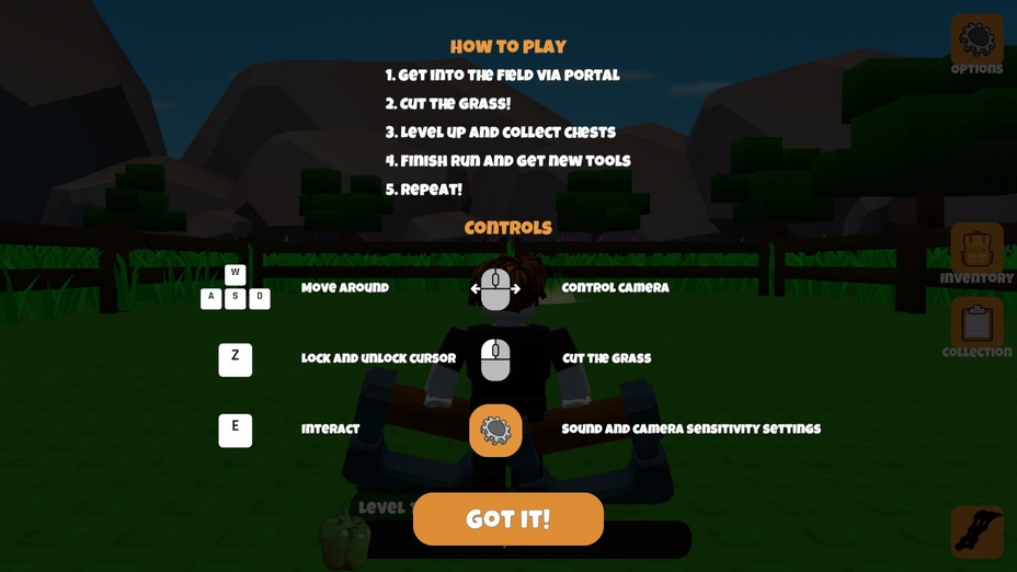 Use seu mouse ou tela de toque para direcionar seu cortador pelo campo. Clique com o botão esquerdo ou toque para cortar a grama e explore várias ações com suas ferramentas à medida que avança no jogo.