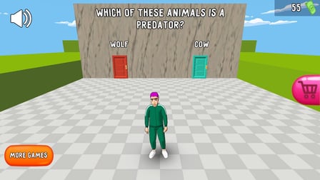Em Squid Game Choose Door, os jogadores aventure-se em uma jornada repleta de trivia. Cada porta guarda a promessa de intriga enquanto você navega por um labirinto de perguntas projetadas para testar seu conhecimento geral. Os visuais vibrantes, juntamente com os efeitos sonoros envolventes, criam uma atmosfera envolvente que faz com que os jogadores voltem sempre por mais!