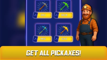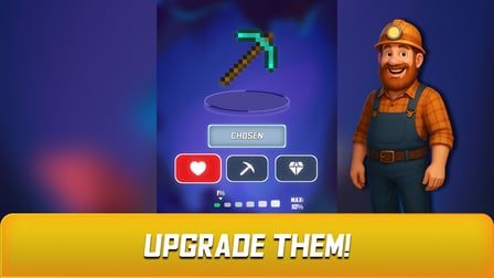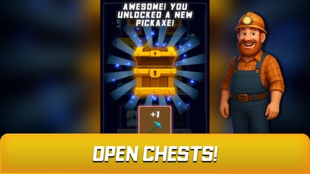 Du kannst Pickaxen mit Karten aufrüsten, die du während des Spiels sammelst. Öffne Truhen für Überraschungen!