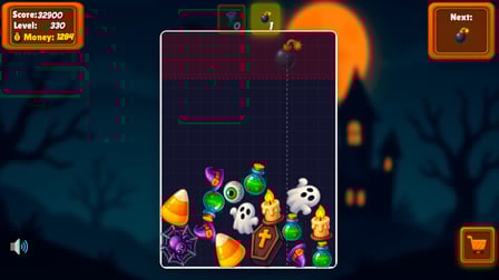 En PC, usa las teclas de flecha para mover los íconos de Halloween. Cada pulsación moverá todos los íconos en la dirección elegida. En un dispositivo móvil, desliza en la dirección que deseas que se muevan los íconos. La fusión ocurre automáticamente cuando dos íconos idénticos se tocan, creando un nuevo ícono de Halloween.