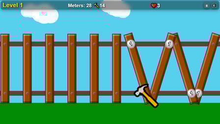 Nail the Fence! — is a retro arcade game in the style of old arcade machines, where your goal is one: keep the fence from falling apart! Boards fly from right to left without stopping. Each one has one or two unhammered nails. Your mission is to hit the head of the board with a hammer just in time before it rolls past. The longer you hold on, the faster the fence flies and the more difficult the nails become.