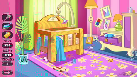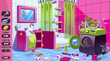 Sprzątanie pokoju jest łatwe do odebrania i grania, dzięki czemu jest odpowiednie dla graczy w każdym wieku. Głównym celem jest czyszczenie różnych pomieszczeń poprzez usuwanie kurzu, plam i pajęczyn. Wystarczy dotknąć, aby wyczyścić i przeciągnąć przedmioty z powrotem do wyznaczonych miejsc. W chwilach, w których możesz czuć się przytłoczony, przycisk podpowiedzi jest po to, aby cię przez to poprowadzić. Dzięki intuicyjnemu sterowaniu i prostej mechanice sprzątanie pokoju zapewnia płynną i przyjemną rozgrywkę.