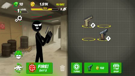 Karakterinizi dokunmatik kontroller kullanarak kontrol edersiniz: çubuk figürleri birleştirmek için dokunun, nişan almak için sürükleyin ve oyun alanında gezinmek için kaydırın.